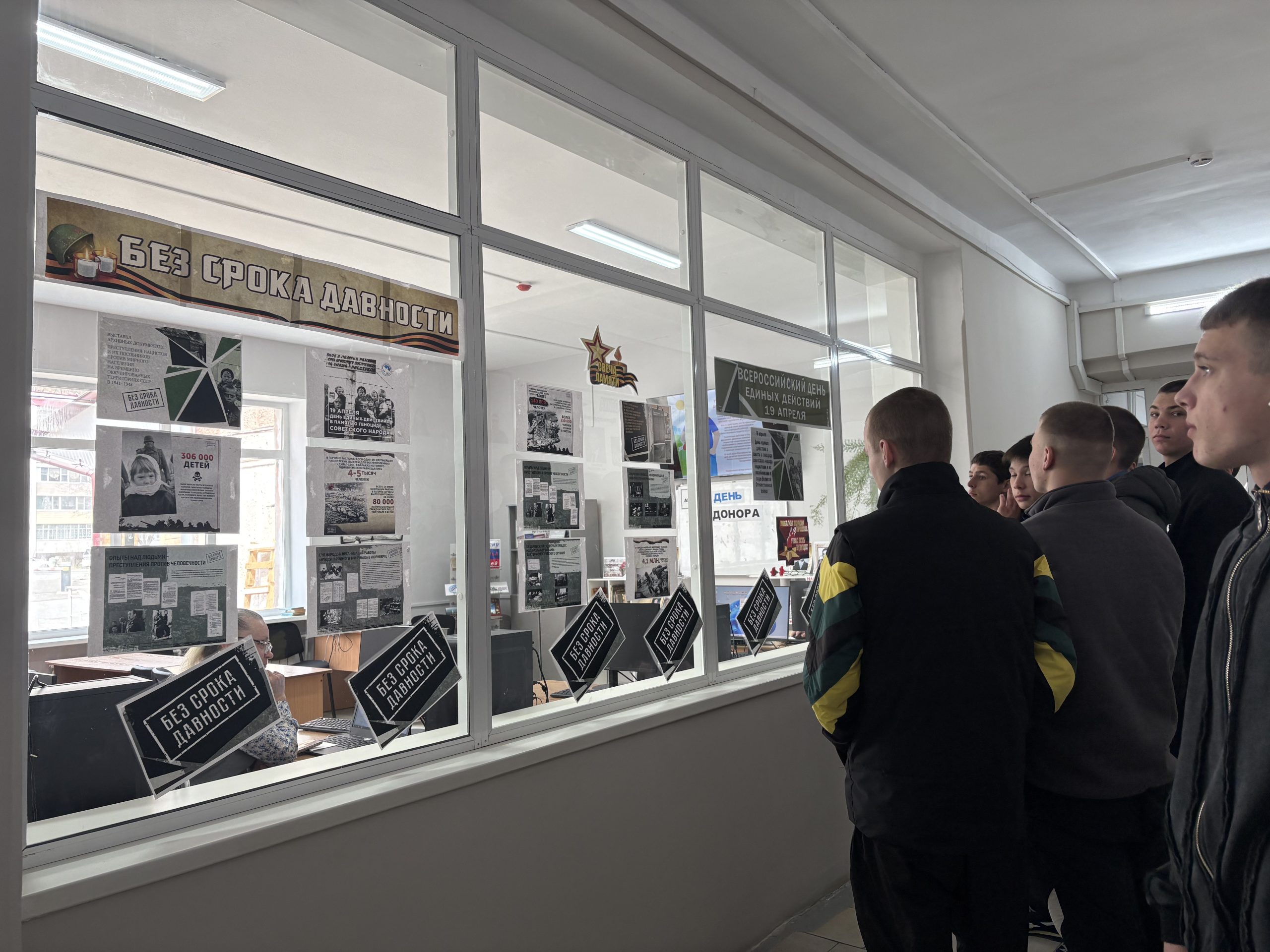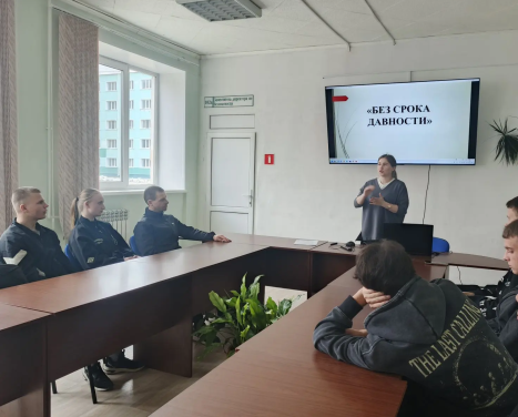 В этот день советник директора по воспитанию Белай П.В. и классные руководители провели для студентов Час памяти «Без срока давности». В рамках мероприятия состоялся просмотр короткометражного фильма «Приют смерти», после чего прошло обсуждение. Студенты говорили о трагедии мирного населения, бесчеловечной нацистской идеологии и необходимости противостоять любым проявлениям ненависти и насилия.