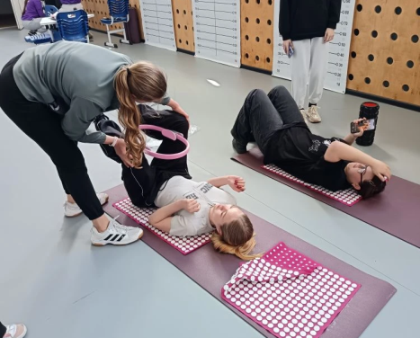 🔹 Провели диагностику осанки с помощью специальной сетки на волонтёрах — искали нарушения и учились их видеть.