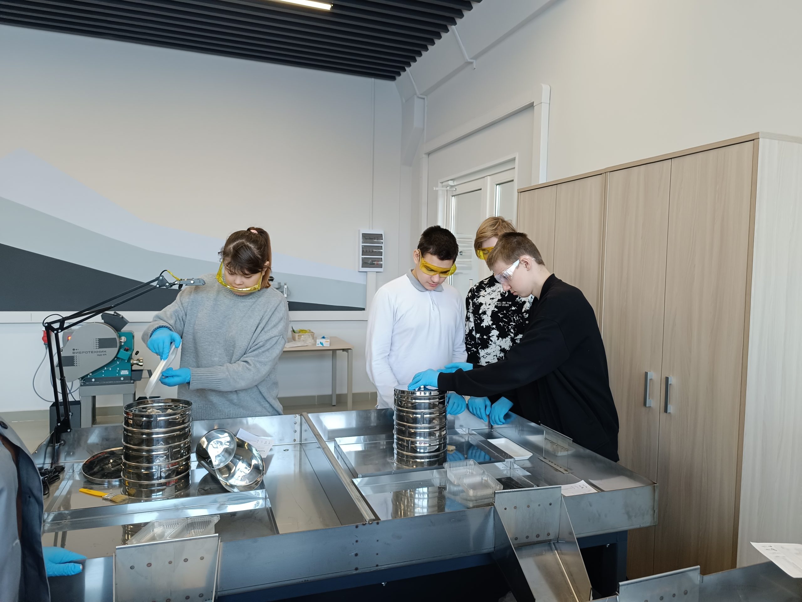 В Технодень на уроке химии школьники под руководством преподавателя колледжа Евгении Сергеевны Хлесткиной изучили полезные ископаемые, познакомились с их классификацией, технологическим процессом измельчения и обогащения. В практической части урока школьники самостоятельно распределяли руду по классу крупности, проводили весовой анализ и делали выводы об эффективности работы оборудования.