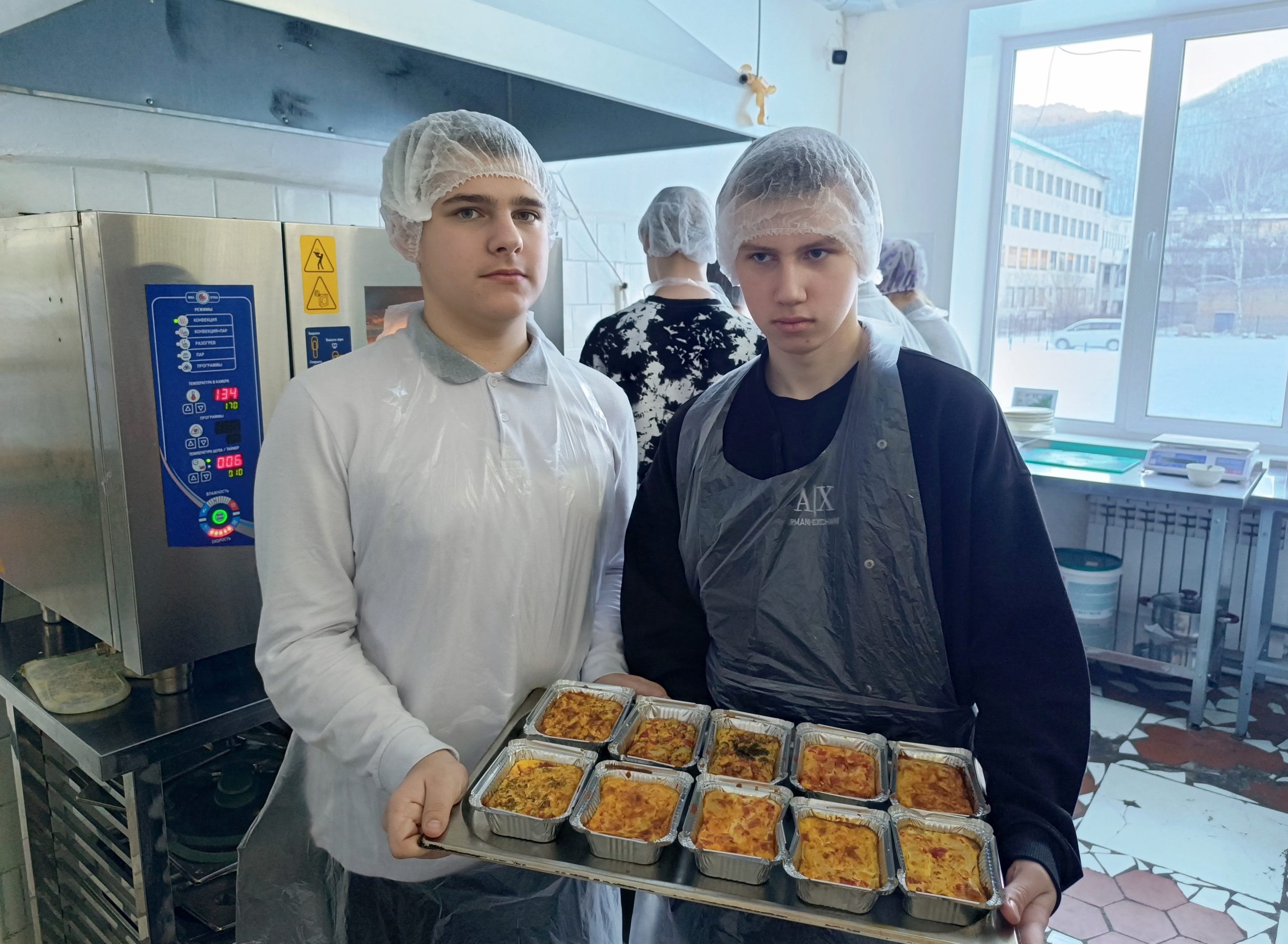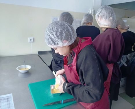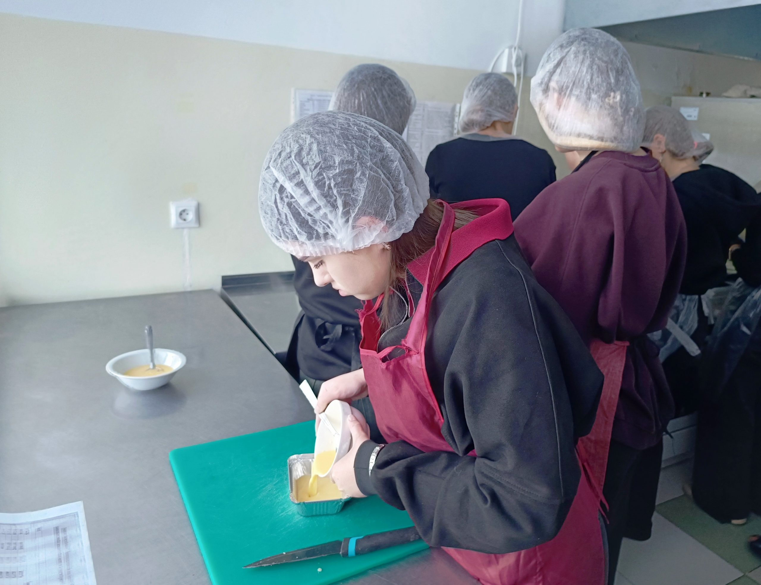Урок технологии прошел в учебно-кулинарном цехе, где под руководством мастера производственного обучения Аллы Михайловны Моревой мальчики и девочки готовили настоящую фритатту – омлет с овощами и сыром.
