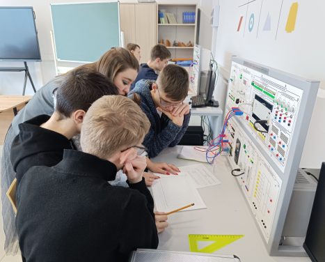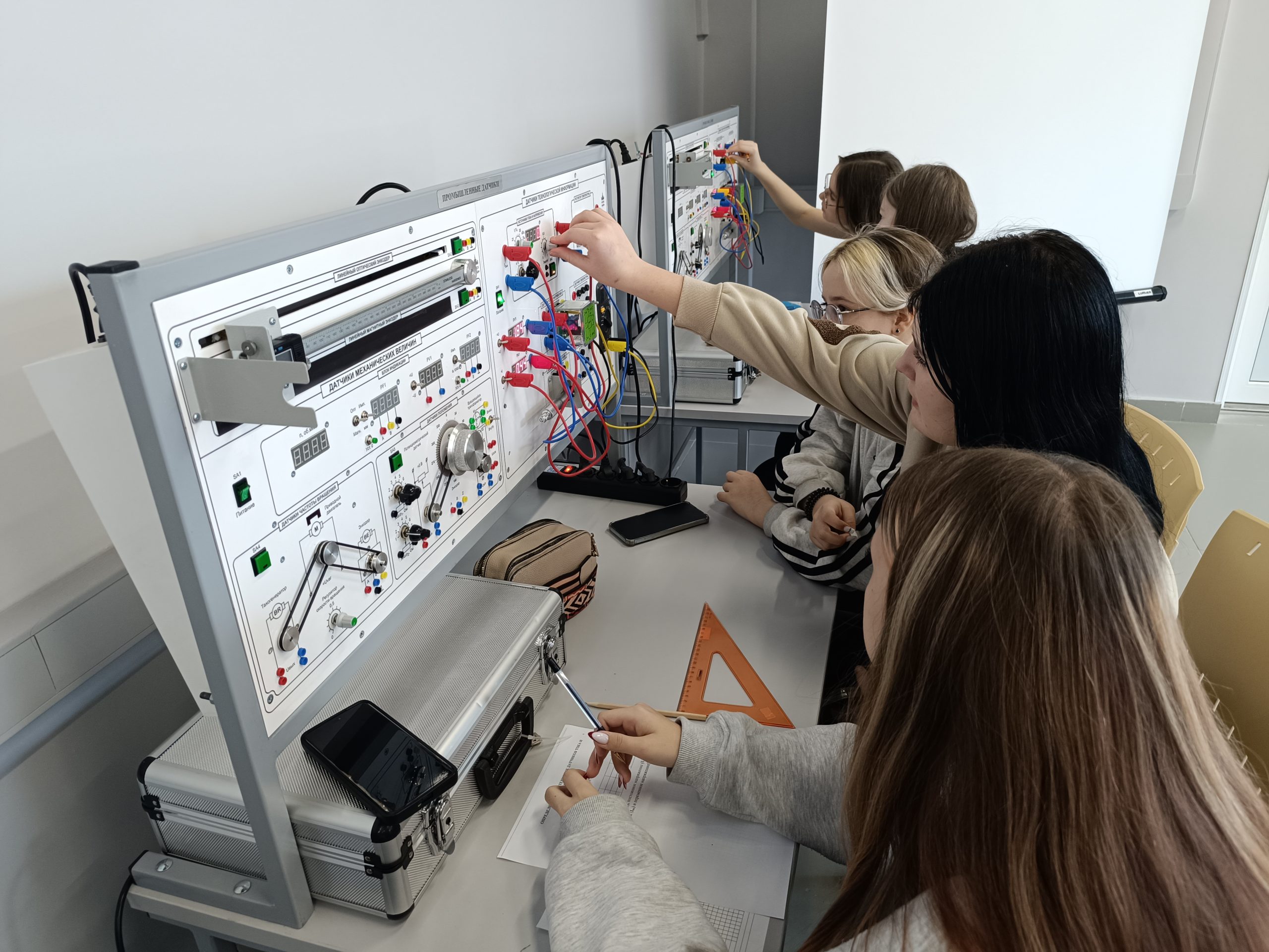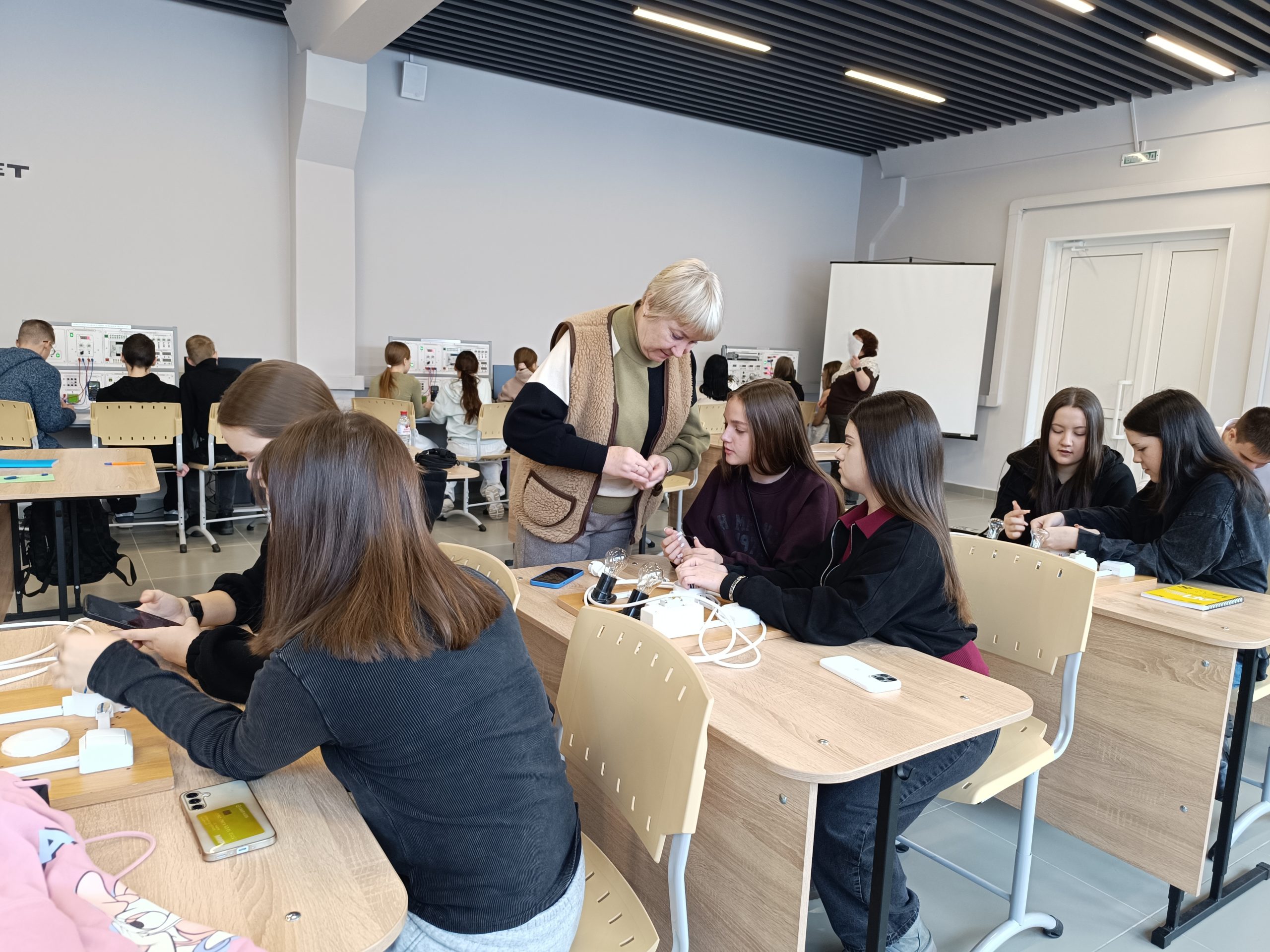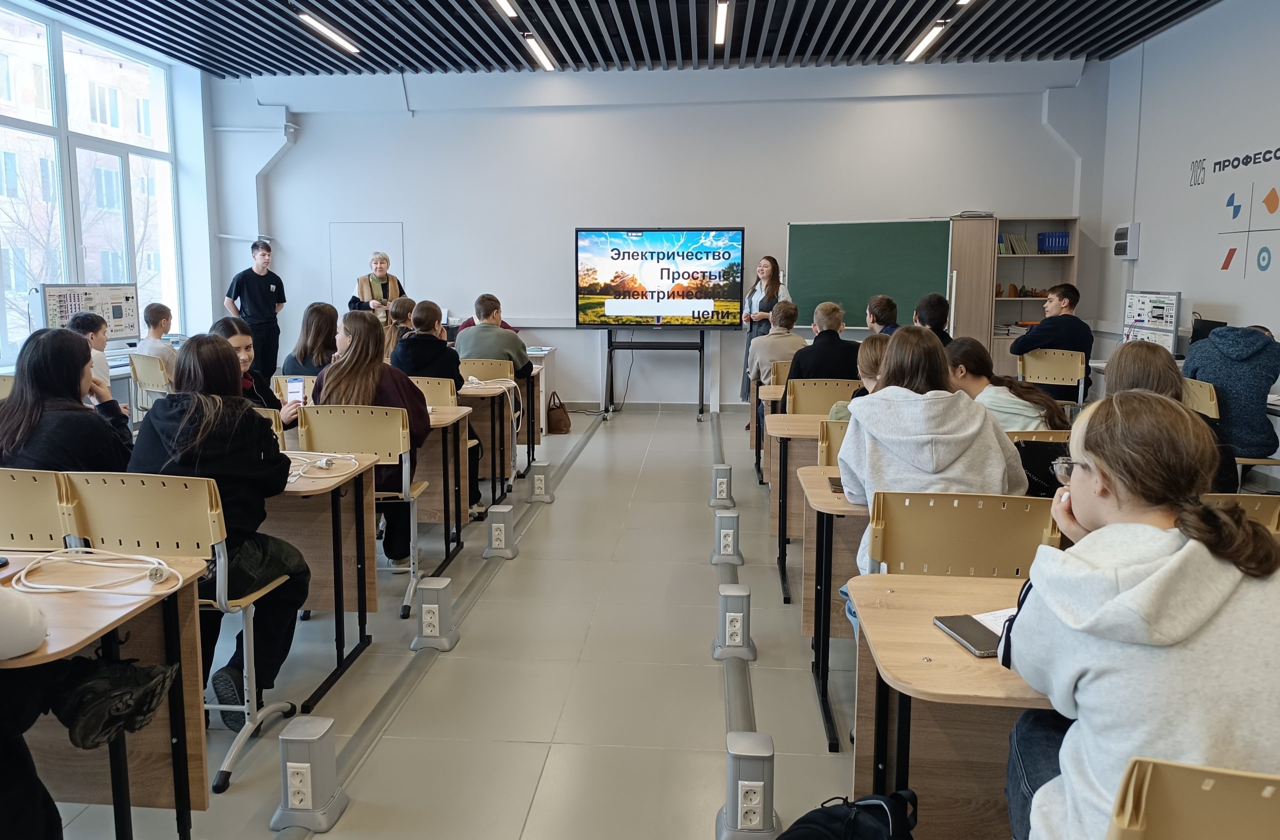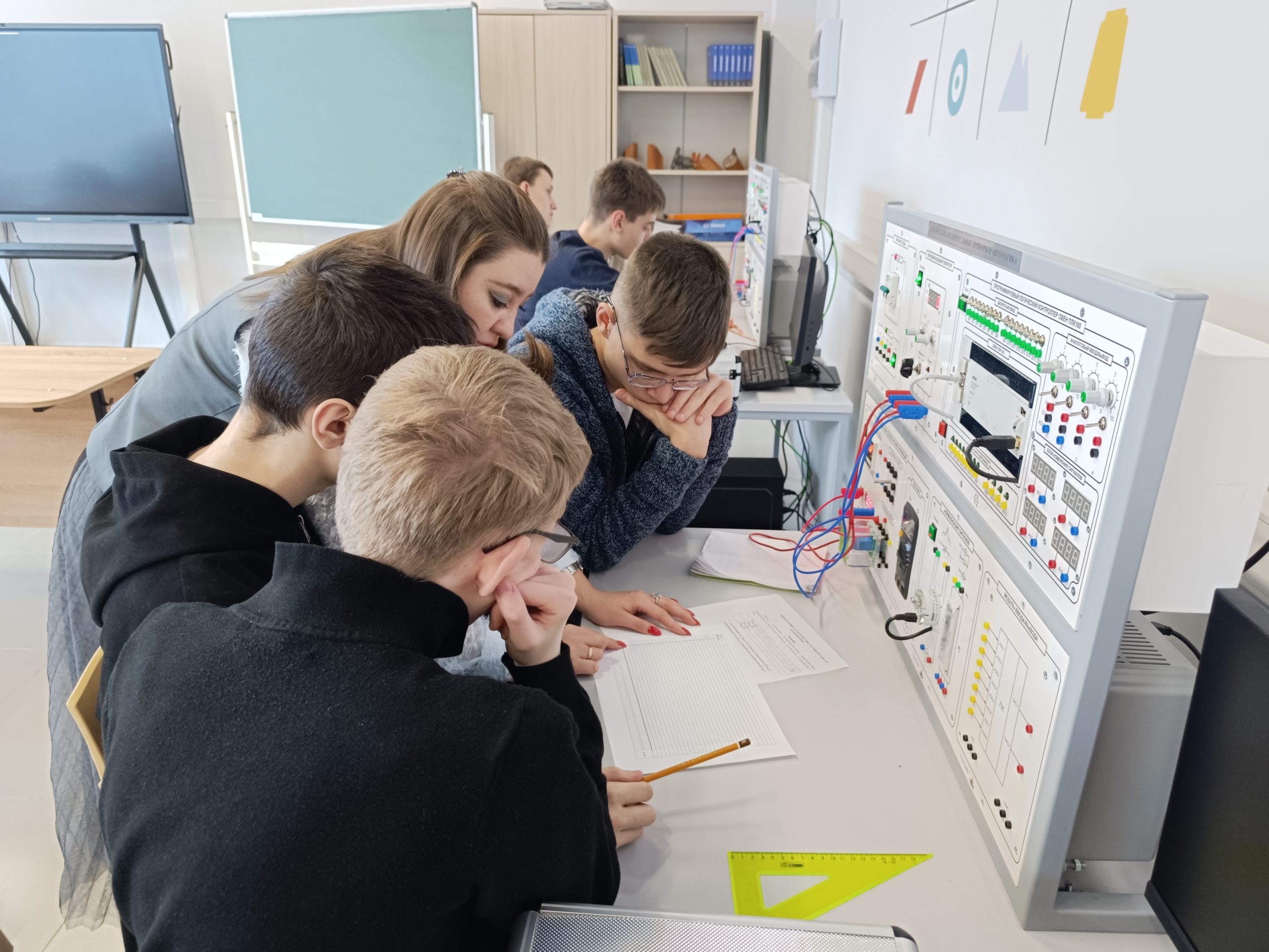 Темой урока физики стало «Электричество», а его практической частью – знакомство с профессиями мастера КИПиА и электромонтера. Под руководством преподавателя колледжа Елены Юрьевны Гавриковой и мастера производственного обучения Юлии Ромуальдовны Лазаревой ребята тестировали контрольно-измерительные приборы, разбирались в датчиках тока и напряжения, снимали показания и строили характеристику, а также собирали простую электрическую цепь.