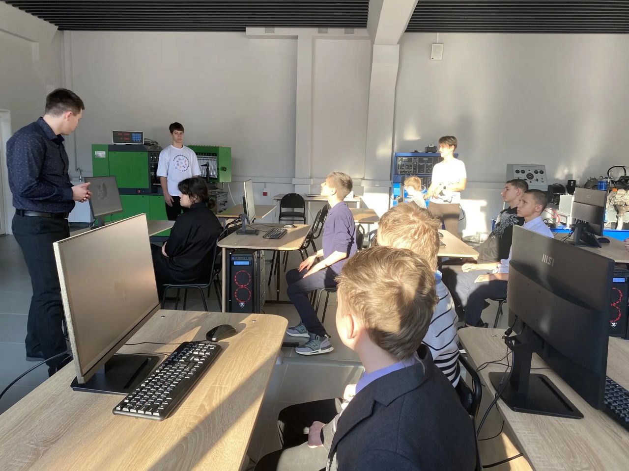 Школьники с большим интересом побывали в аудиториях, учебных мастерских и лабораториях, поучаствовали в мастер-классах от наших преподавателей, познакомились с оборудованием, попробовали себя на учебных симуляторах.