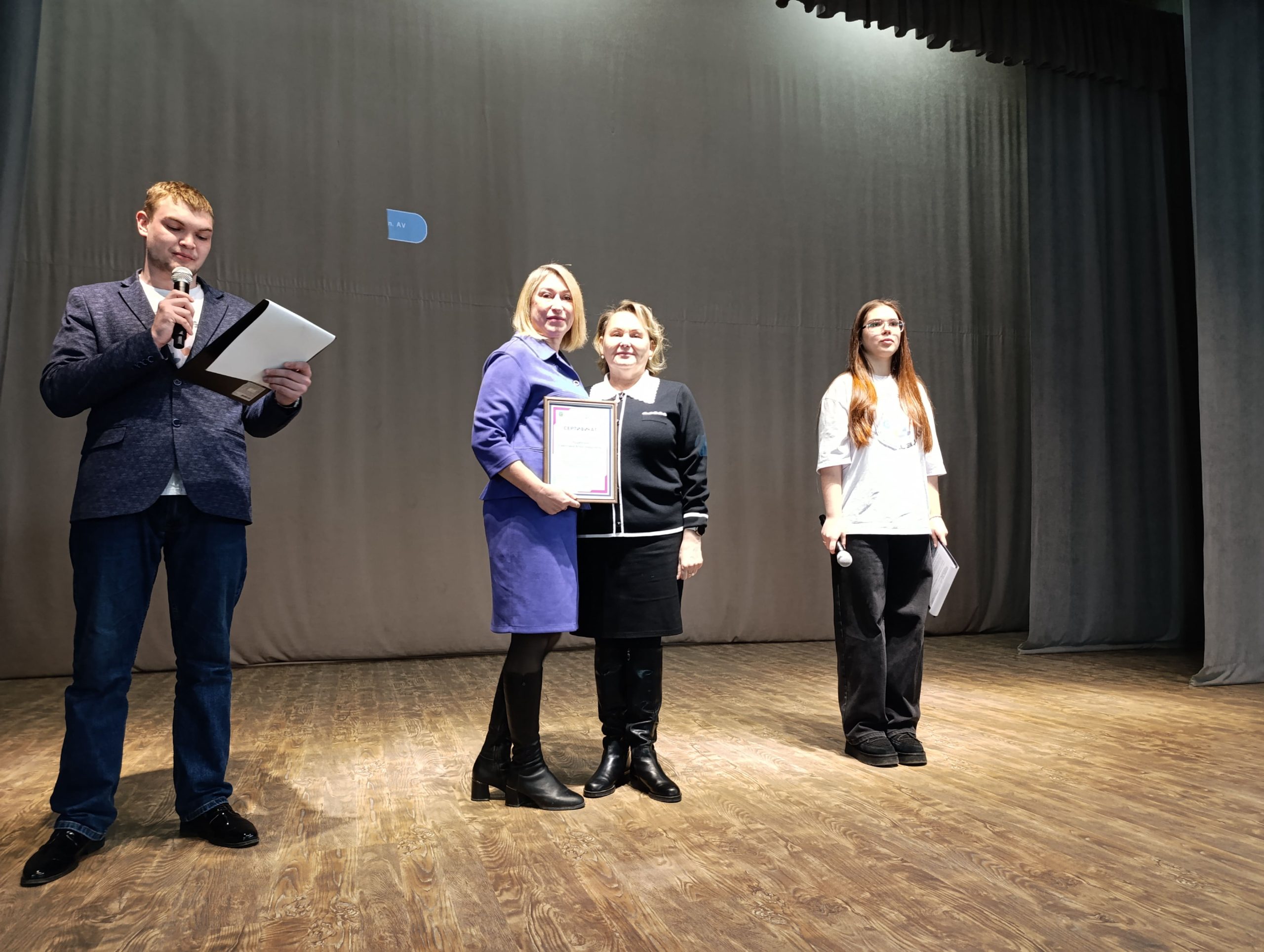 Для награждения победителей на сцену поднялся заместитель Главы ДГО Сергей Петрович Ильинов.