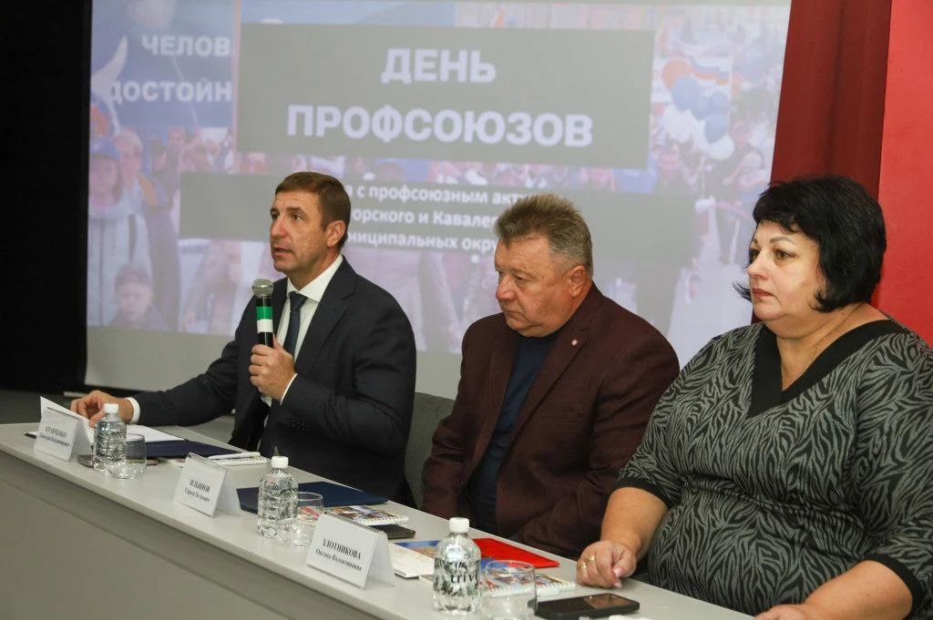 На встрече лидер ФППК Дмитрий Кравченко выступил с докладом о ключевой роли профсоюзного движения в укреплении социального партнёрства в регионе.