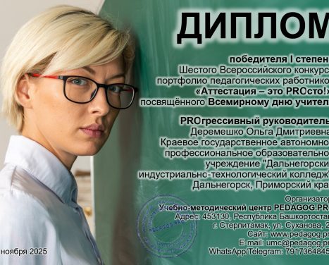Приморский край представляла победитель регионального этапа «Профессионалов», студентка ДИТК Анна Бородина. Наставник конкурсанта и эксперт чемпионата — преподаватель Наталья Владимировна Шульга.