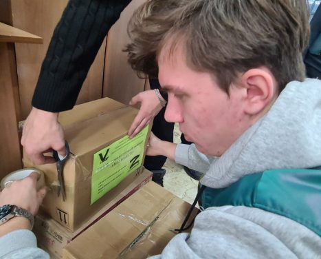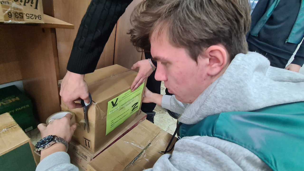 Преподаватели, студенты и их семьи наполнили посылки тем, что необходимо на фронте. А это медикаменты, антисептики, дезинфицирующие средства, предметы гигиены, носки, перчатки, чай, сладости и другое.