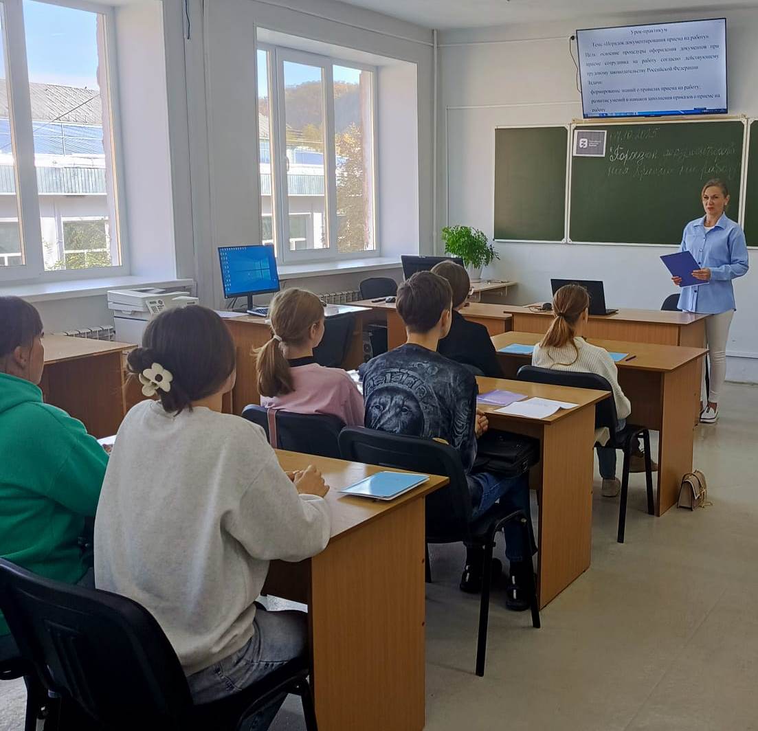 В рамках сдачи демонстрационного экзамена отраслевики подготовили вместе со своими наставниками и провели занятие со студентами специальности «Документационное обеспечение управления и архивоведение» по актуальным вопросам подготовки и оформления ключевых документов, применяемых на предприятии в сфере кадровой деятельности с применением современного программного обеспечения.