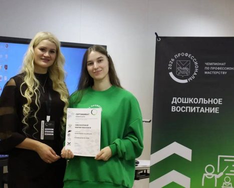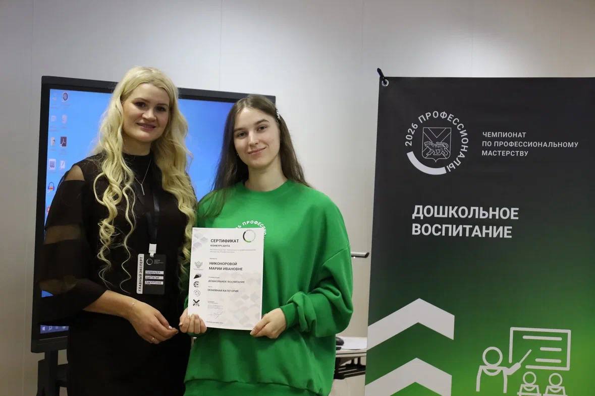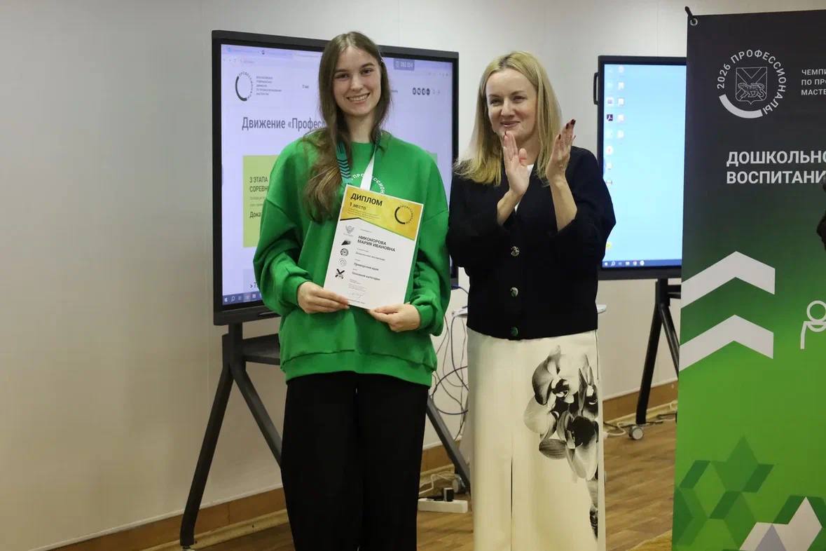 1-е место на чемпионате «Профессионалы 2026» в компетенции «Дошкольное воспитание» — результат упорного труда, таланта и искренней любви к профессии. Мария, ты доказала, что мастерство и упорство ведут к самым высоким наградам! 🌟👏