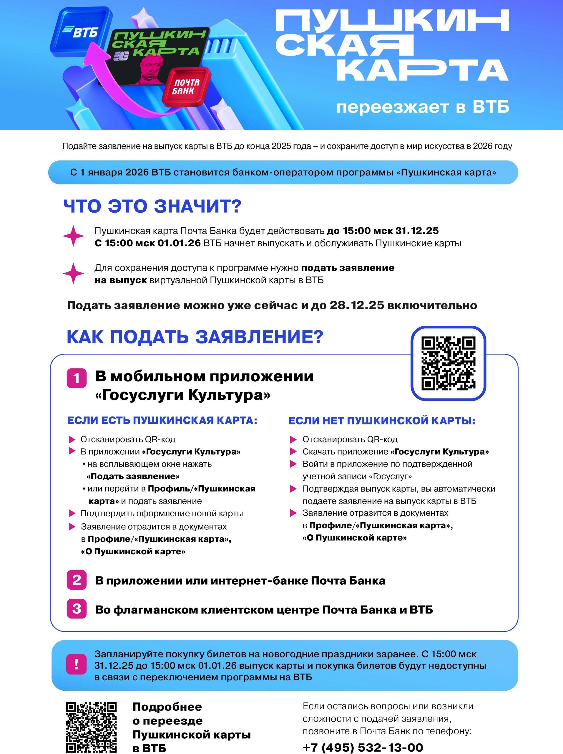 Пушкинская карта переезжает в ВТБ!