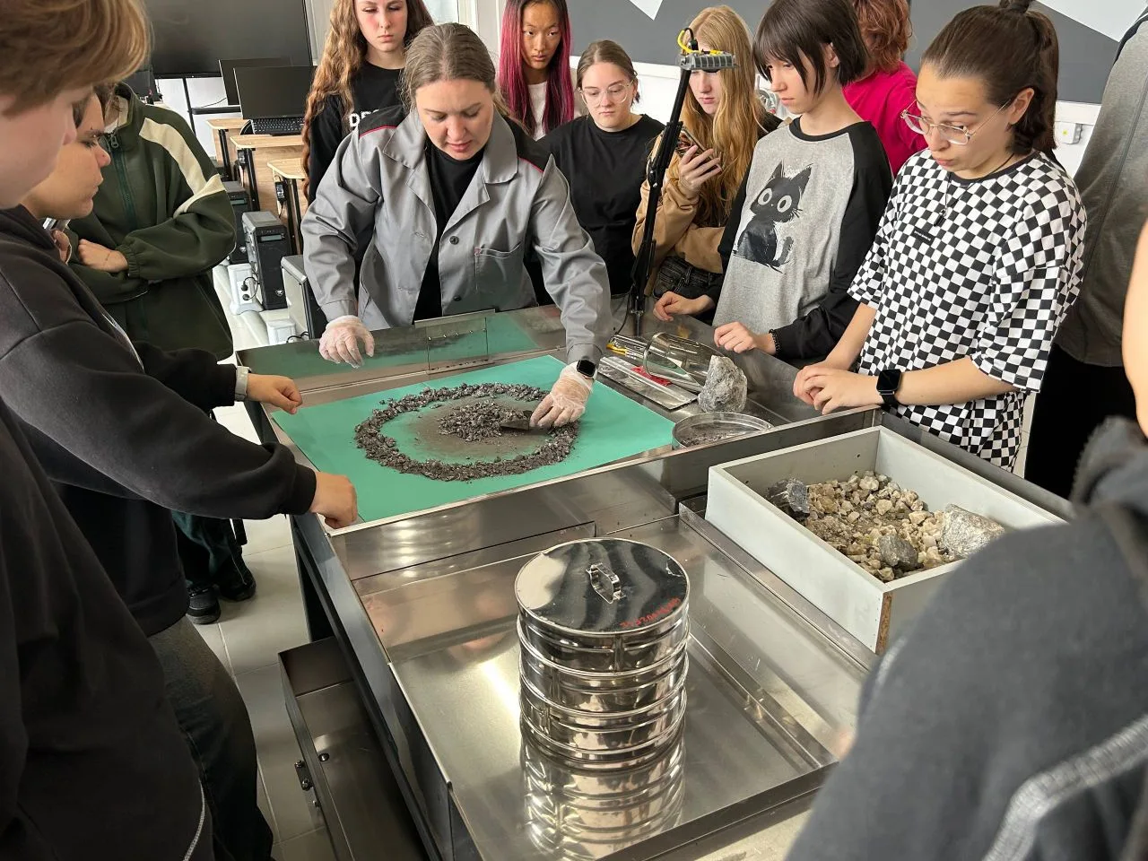 📍 Практическая часть программы позволила студентам попробовать себя в профессиональной деятельности: ребята выполняли практические работы по химическому анализу веществ, получая первый профессиональный опыт.
