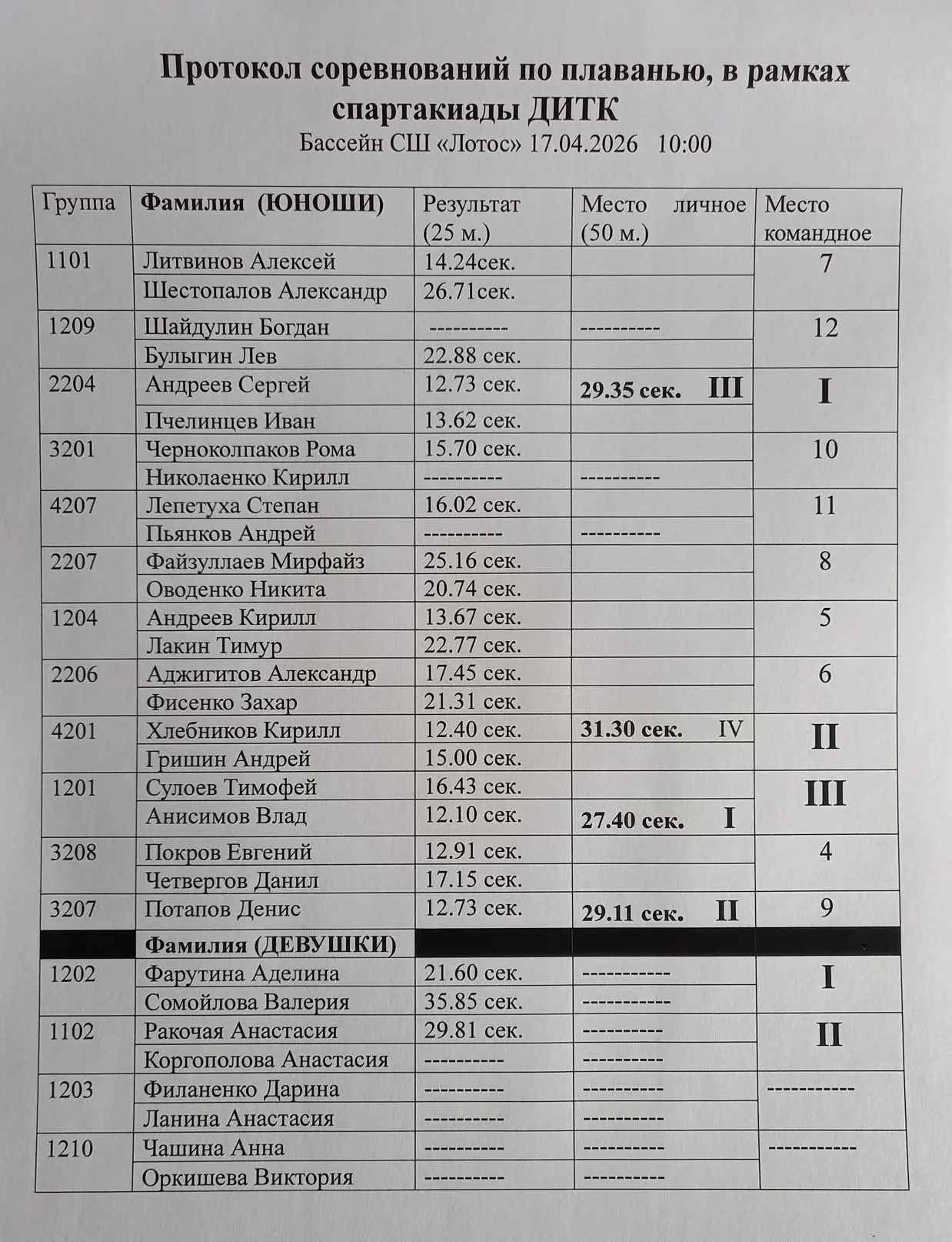 СПАРТАКИАДА ДИТК🏊