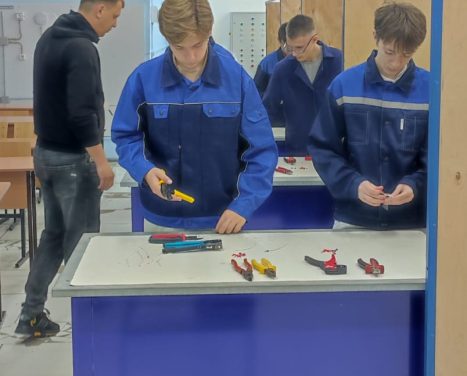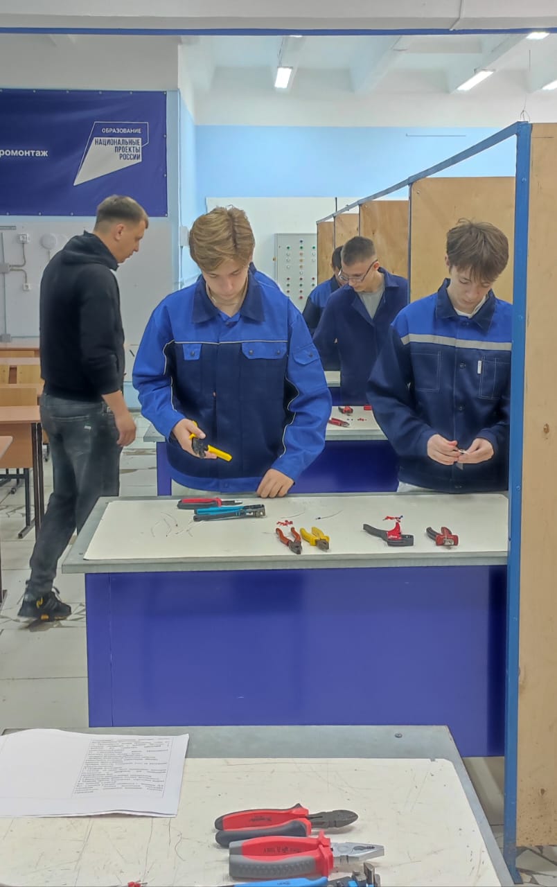 В рамках демонстрационного экзамена отраслевики провели занятия по профессии «Электромонтер по ремонту и обслуживанию электрооборудования (по отраслям)». Студентов обучали современным техникам монтажа электрооборудования, включая работу с системами автоматизации, соблюдение норм электробезопасности и применение энергоэффективных решений.