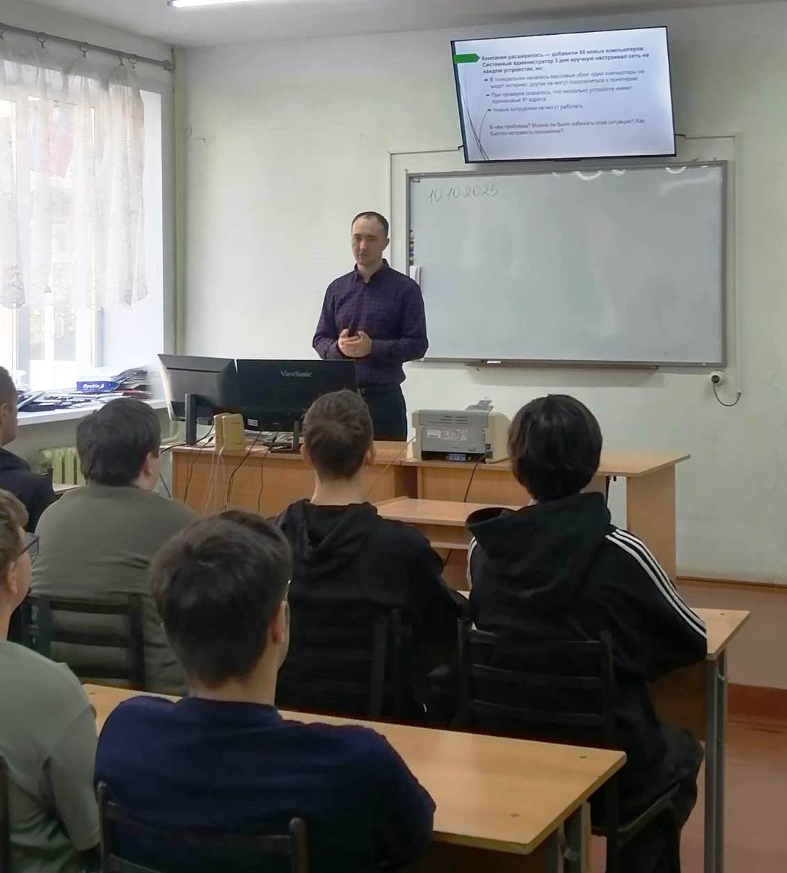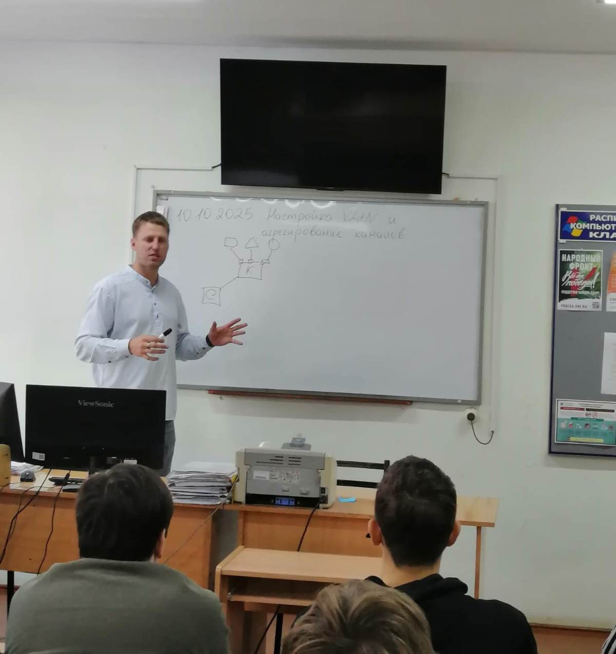 Финалом стажировки стало проведение занятия среди студентов, обучающихся по специальности «Сетевое и системное администрирование», по актуальным аспектам настройки корпоративных сетей с применением современного оборудования.