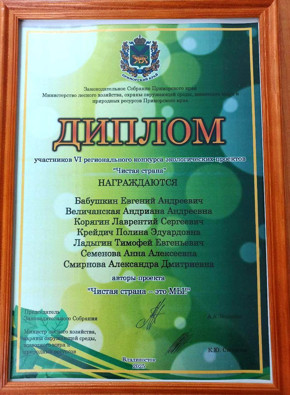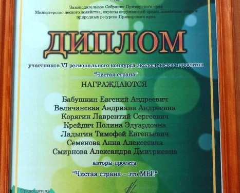 Группа наших студентов вернулась из поездки во Владивосток с наградами VI регионального конкурса экологических проектов «Чистая страна».