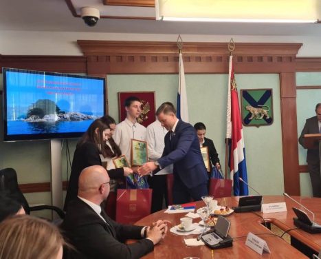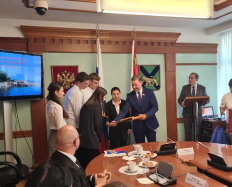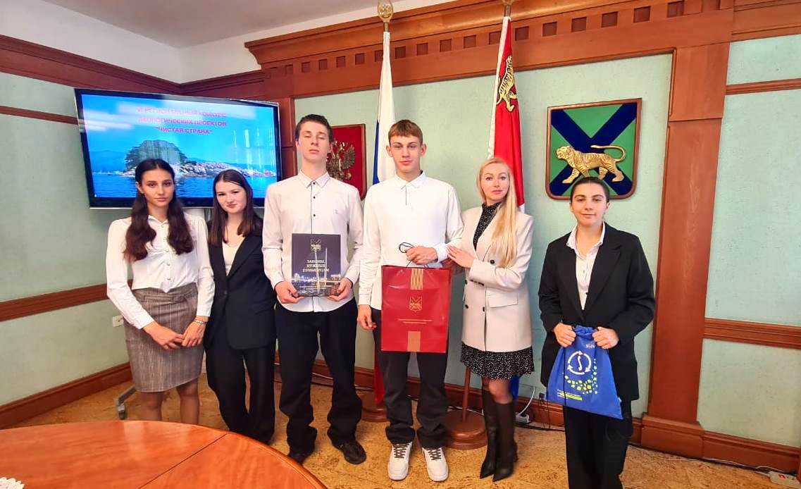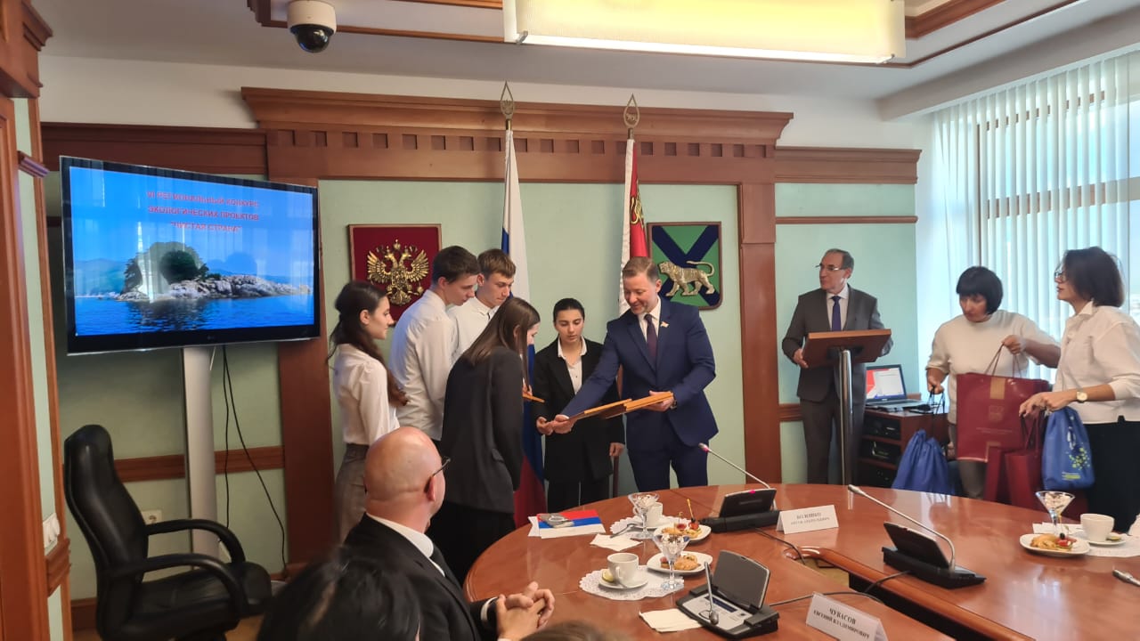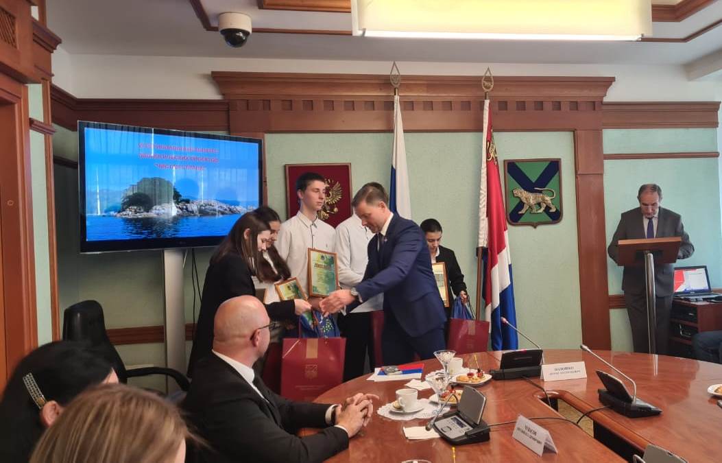 И вот в Законодательном Собрании Приморского края состоялось награждение победителей и участников конкурса! Наши студенты получили дипломы и ценные подарки из рук председателя краевого парламента А.А. Волошко.