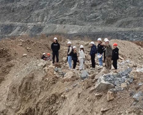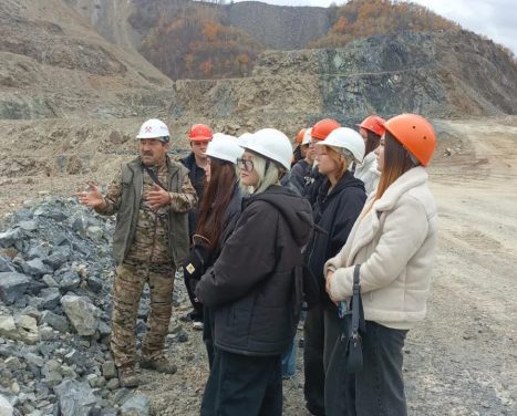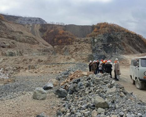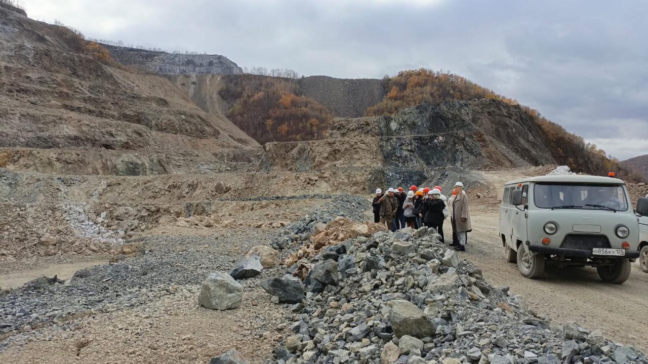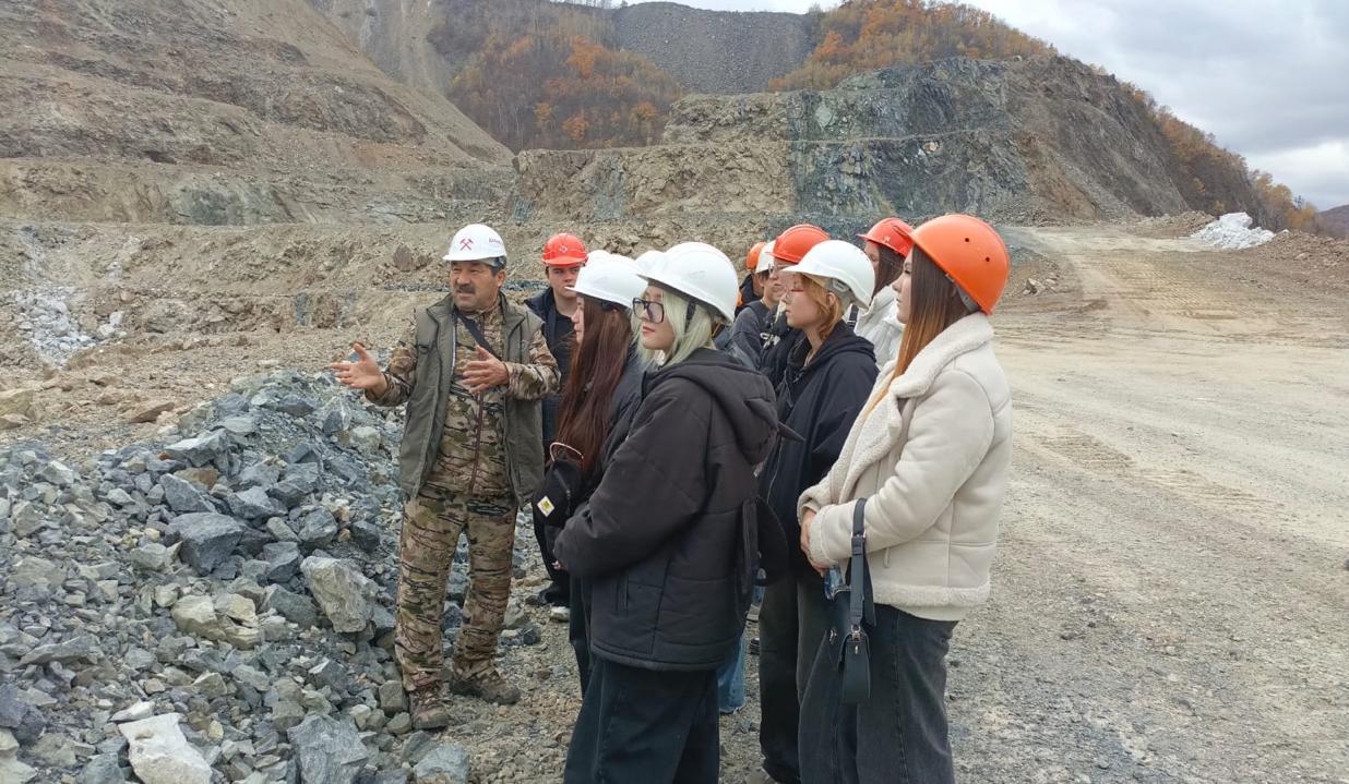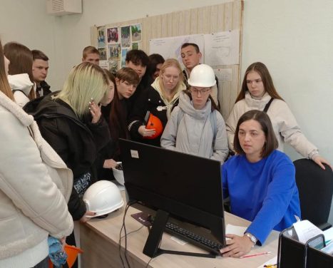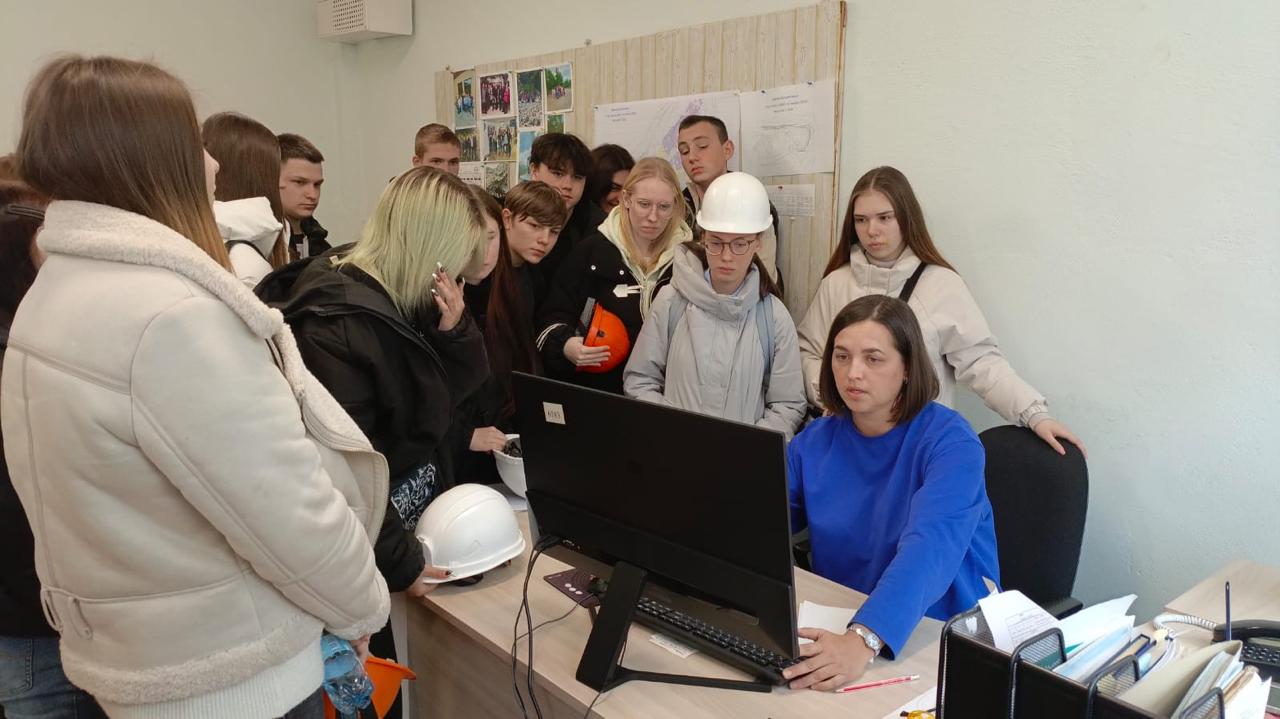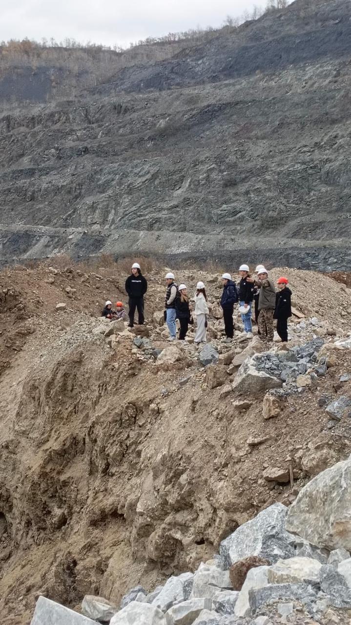Студентов на протяжении всего занятия сопровождали сотрудники предприятия: начальник рудника открытых горных работ Георгий Георгиевич Байгенжев, специалист по подбору персонала Марина Леонидовна Маркус, заместитель начальника отдела кадров по найму персонала Марина Евгеньевна Крепостнова.