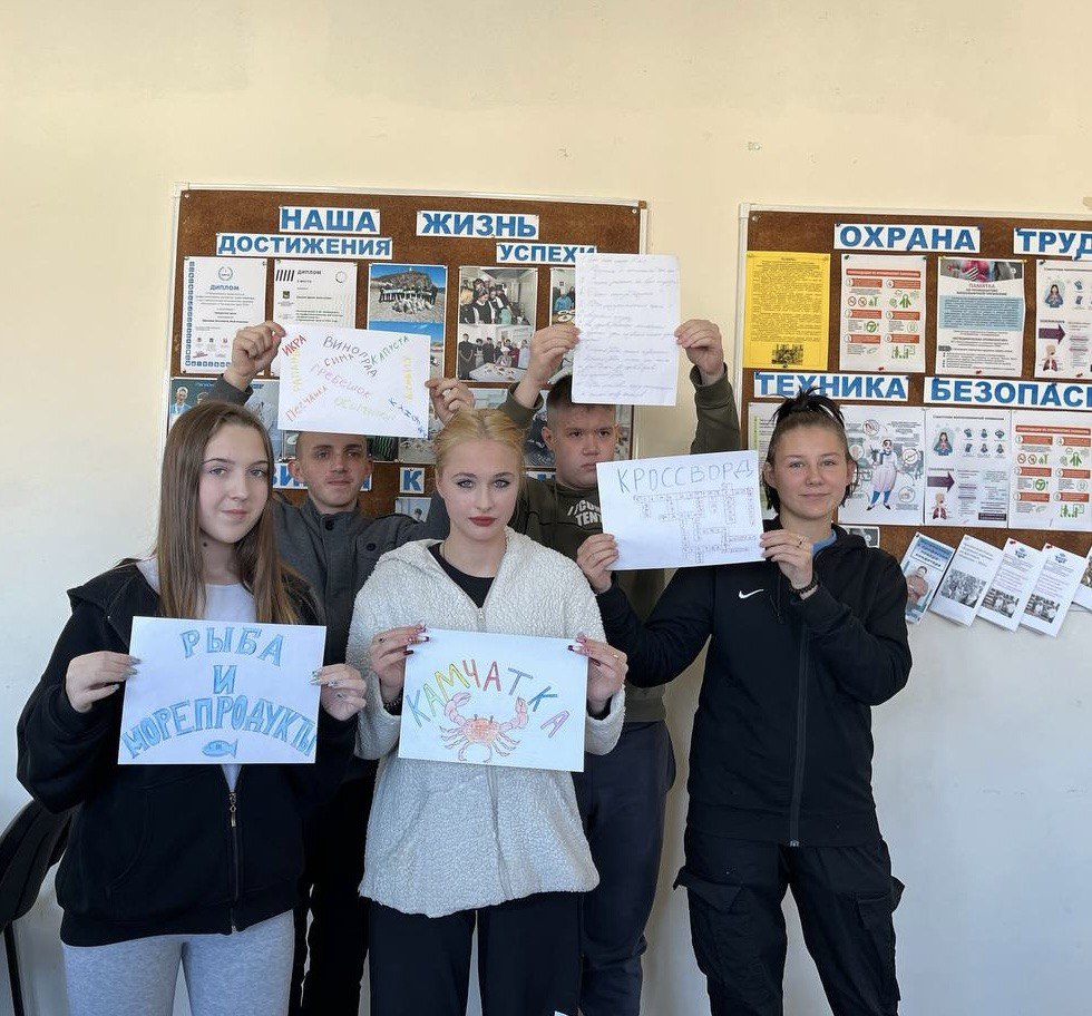 Студенты 1 курса по профессии «Повар, кондитер» под руководством преподавателя Любови Борисовны Литвинец рамках учебного предмета «Организация приготовления, подготовки к реализации и хранения кулинарных полуфабрикатов» совершили настоящую гастрономическую экскурсию — узнали о богатстве природных ресурсов региона, оформляли и составляли кроссворды на тему «Рыба и морепродукты Камчатки».
