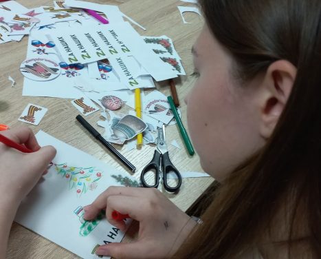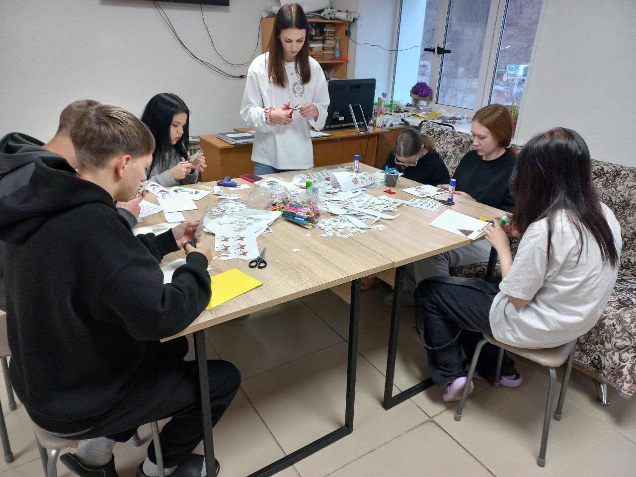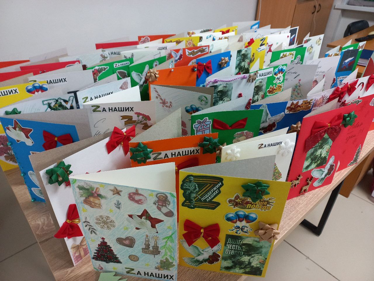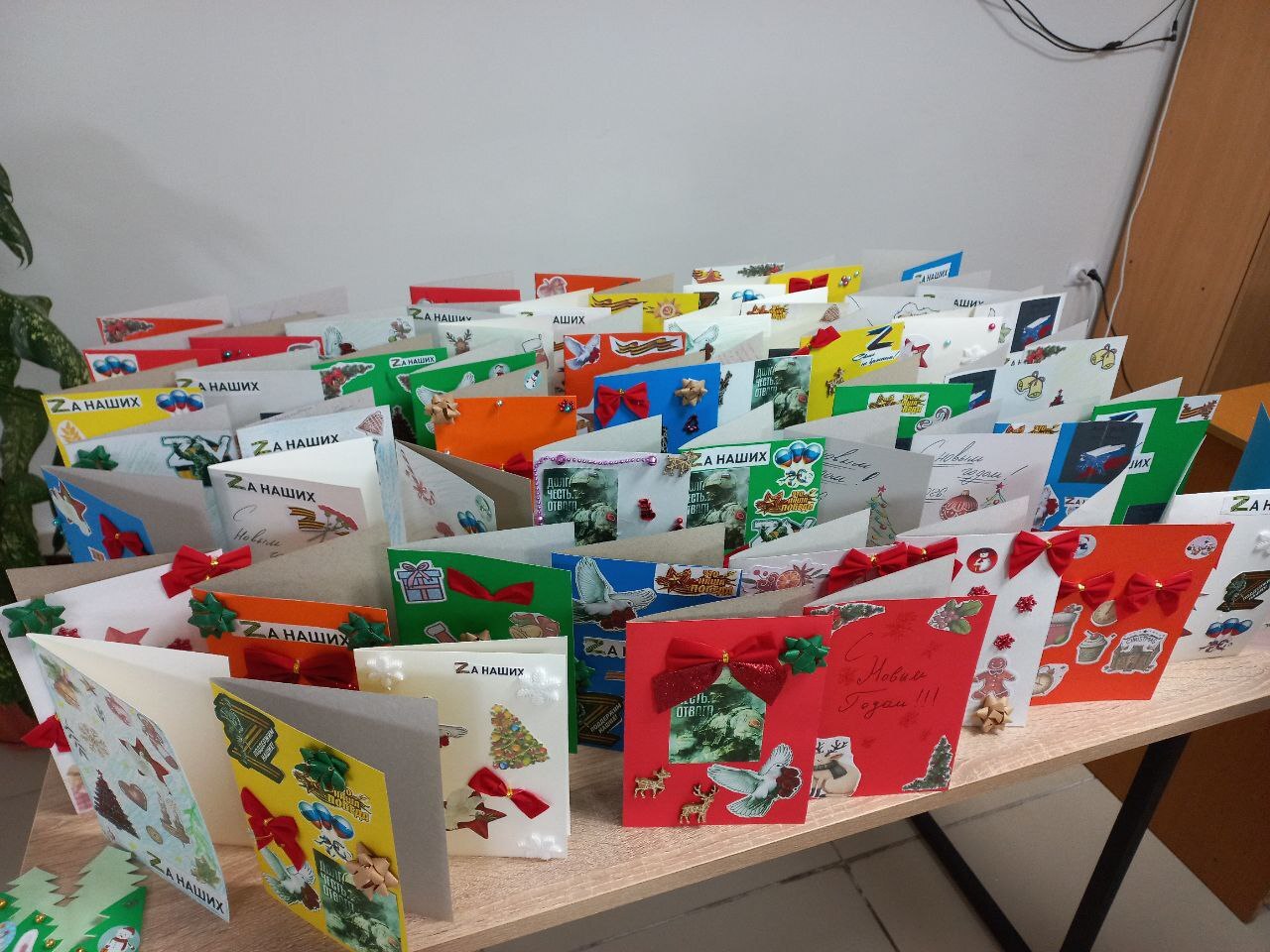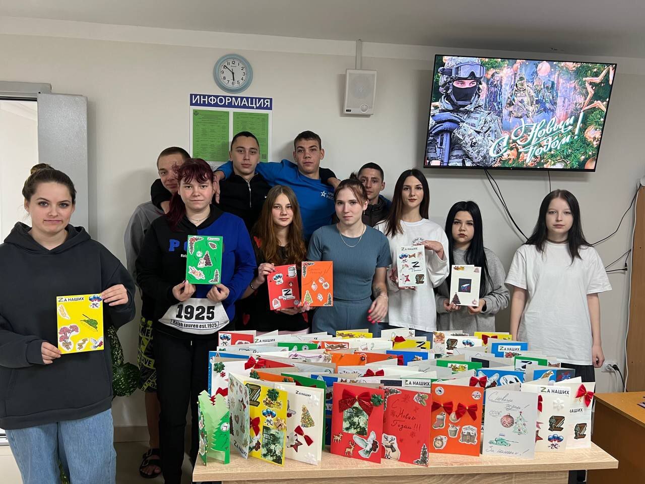 Студенты под руководством воспитателя Анастасии Викторовны Игнатовой изготовили новогодние открытки. Эти чудесные теплые послания в рамках акции #МЫВМЕСТЕ будут отправлены бойцам в зону проведения СВО.