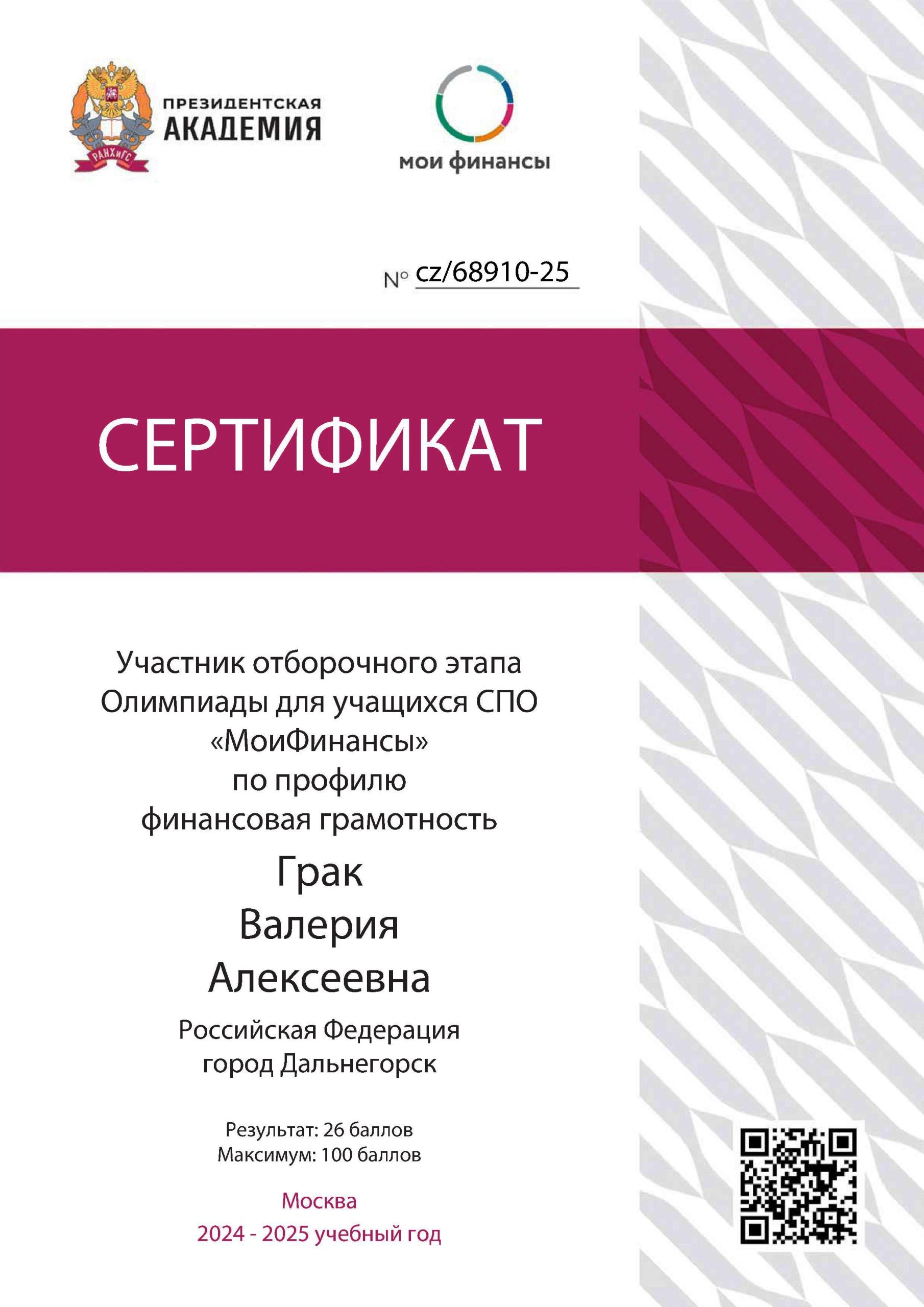 Студенты ДИТК подтвердили знания по финансовой грамотности участием в Олимпиаде Президентской академии для учащихся организаций СПО по финансовой грамотности «МоиФинансы»