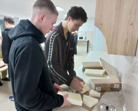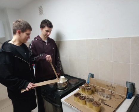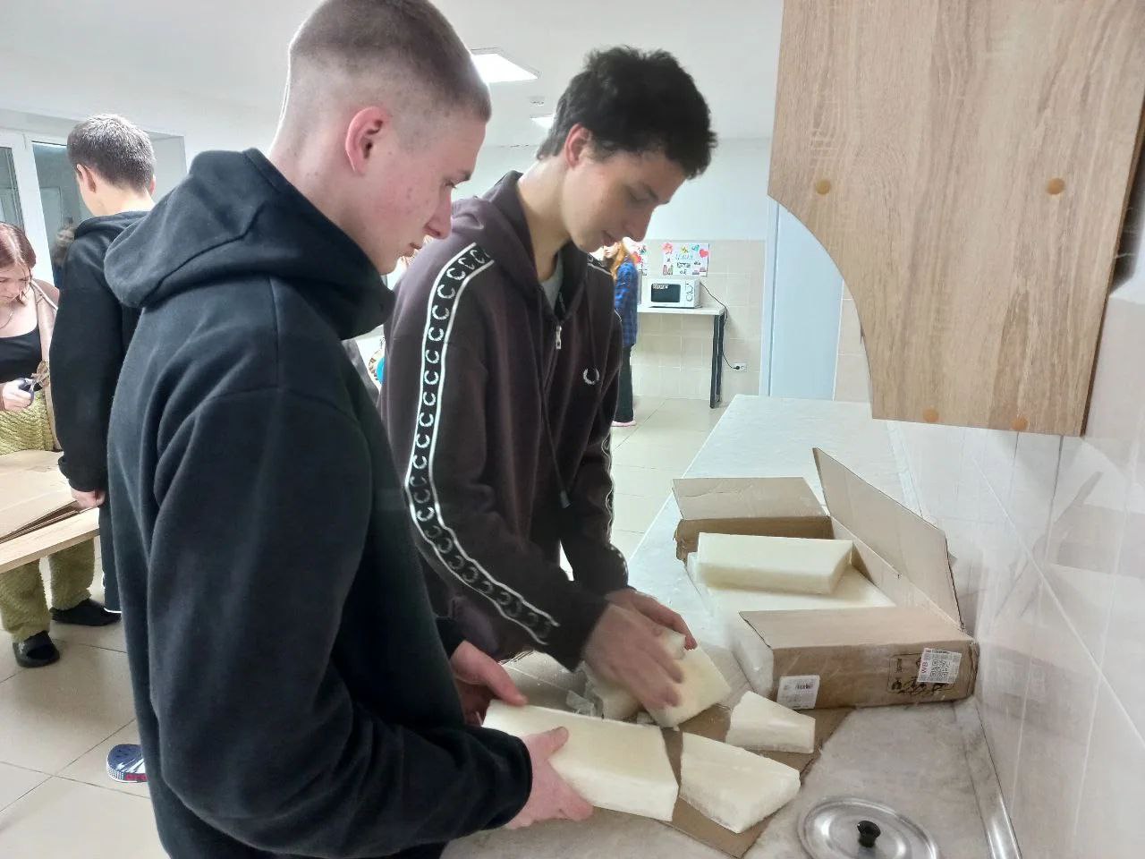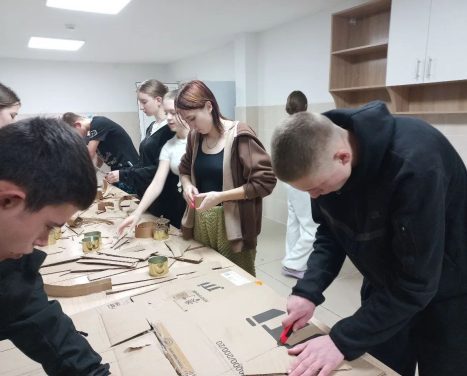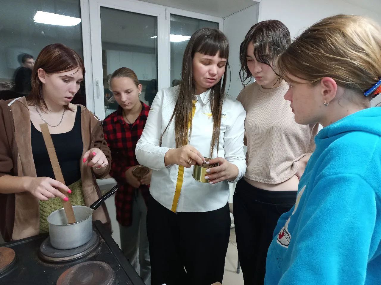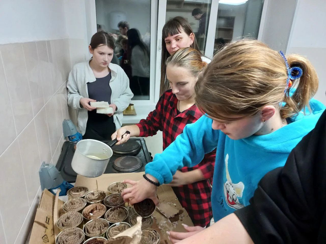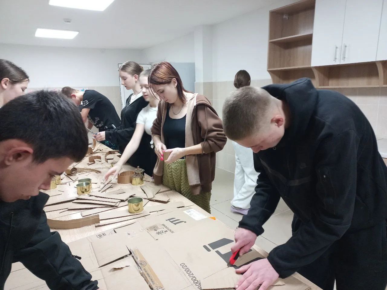 5 декабря, в День добровольца, советник директора по воспитанию Полина Викторовна Белай и воспитатель общежития Анастасия Викторовна Ан провели со студентами мастер-класс по изготовлению окопных свечей, которые так необходимы в зоне СВО.