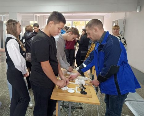 После общего собрания и приветствия от и.о. директора ДИТК Руслана Александровича Пинского, гости колледжа вышли на маршруты по кластеру «Горнодобывающая отрасль».