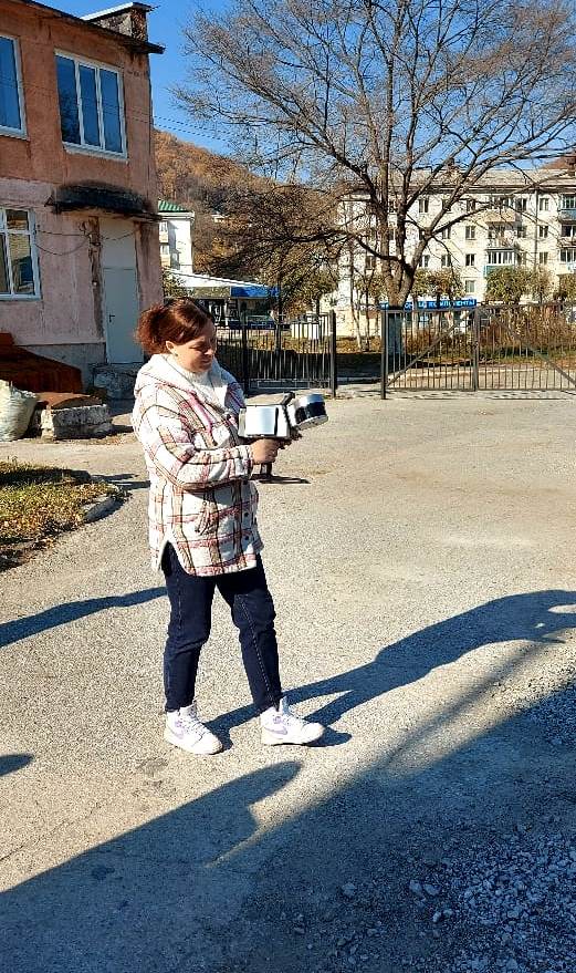Модуль Б. Полевое наземное лазерное сканирование. С помощью ручного лазерного скана GOSLAM 3D участники производили съёмку, затем обработку в программе Кредо полученной информации.