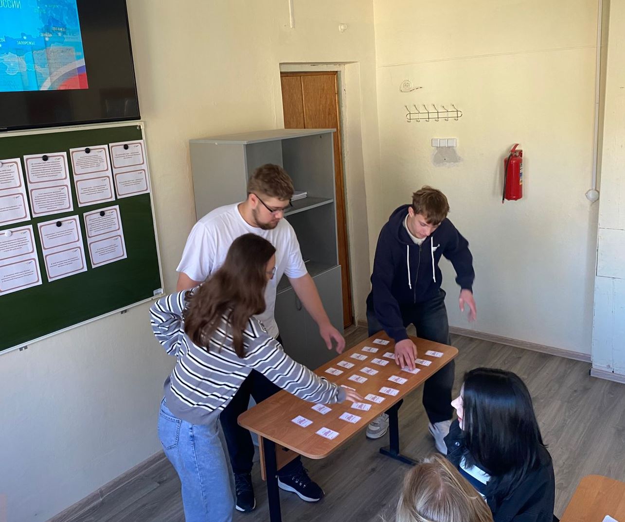Советник директора по воспитанию Полина Викторовна Белай совместно с заведующей отделом воспитательной и социальной работы Анастасией Викторовной Пилюгиной провели для студентов настольную игру «Возвращение истории».