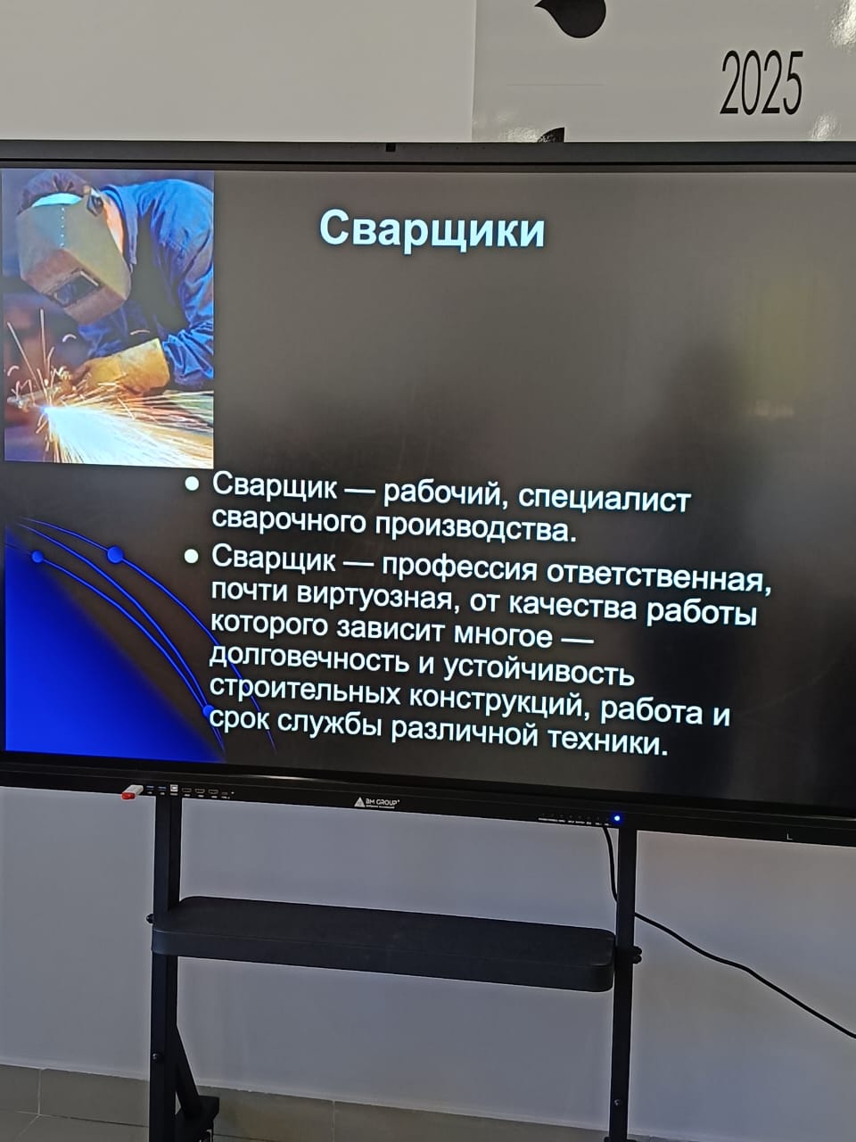 Для них преподаватель Елена Юрьевна Гаврикова провела классный час «Моя профессия – сварщик».