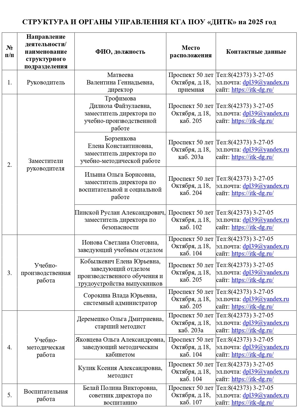 Сокращённое наименование – КГА ПОУ «ДИТК».